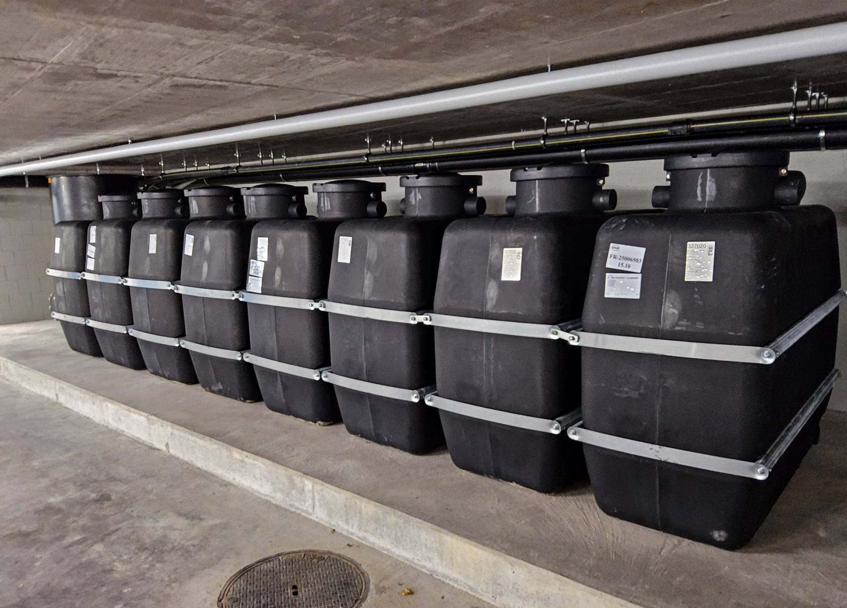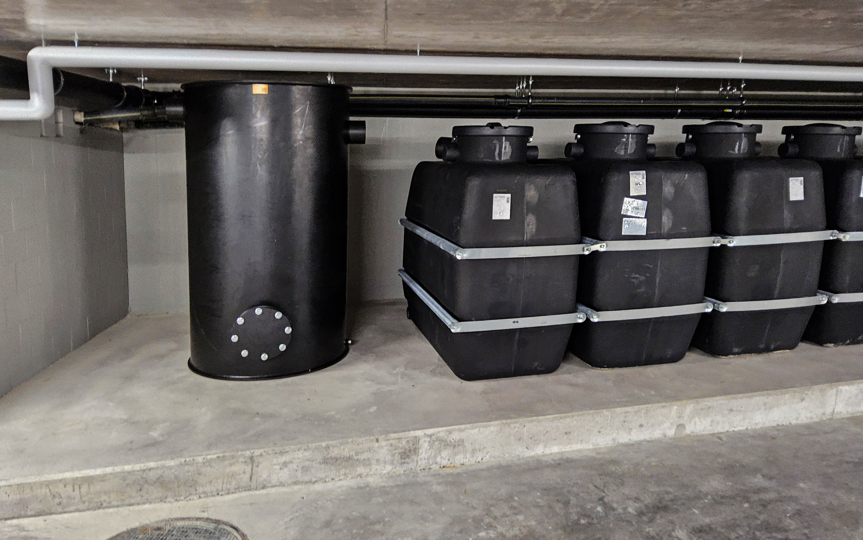 Der Tank zur Sammlung von Regenwasser für die oberirdische Aufstellung im Keller wurde von unserem Partner Otto Graf GmbH entwickelt und steht inzwischen als Serienprodukt für die Kunden zur Verfügung. Starkwandig, schlagzäh und witterungsbeständig und in platzsparende Bauweise realisiert, sind die Tanks als Batterie erweiterbar.Wir haben für den Kunden einen Schlammsammler angefertigt und die Tanks miteinander verbunden. Zusätzlich wurde der Einlauf und Auslauf auf Wunsch des Kunden vom Mass DN 110 auf DN 160 angepasst.
