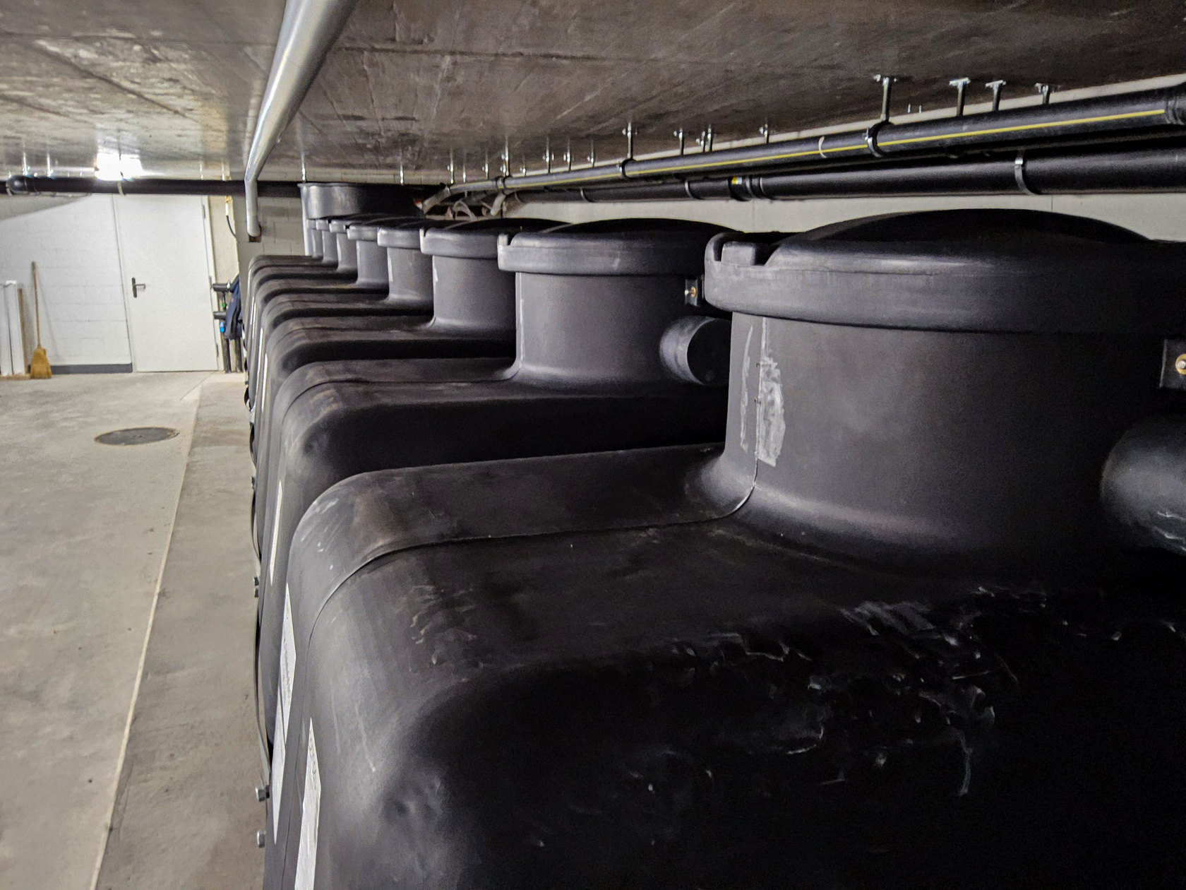 Die Idee Regenwasser aufzufangen und zu speichern ist, dass urbane Gebiete im Fall von Starkregen möglichst viel Wasser in Zisternen, Rückhalte- und Sickerbecken, Grünflächen, Mulden und Drainagegräben aufnehmen, dass in Zeiten der Trockenheit wieder genutzt werden kann. Vor allem sollen jedoch Überflutungen und damit verbundene Wasserschäden verhindert werden. Oft ist jedoch der Aufwand, im Bestand Zisternen oder Regenwassertanks zu installieren gross. Dafür gibt es jetzt intelligente Lösungen – nämlich den Regenwassertank für den Keller. So einen Tank haben wir kürzlich für einen Kunden in Liestal aufgestellt.