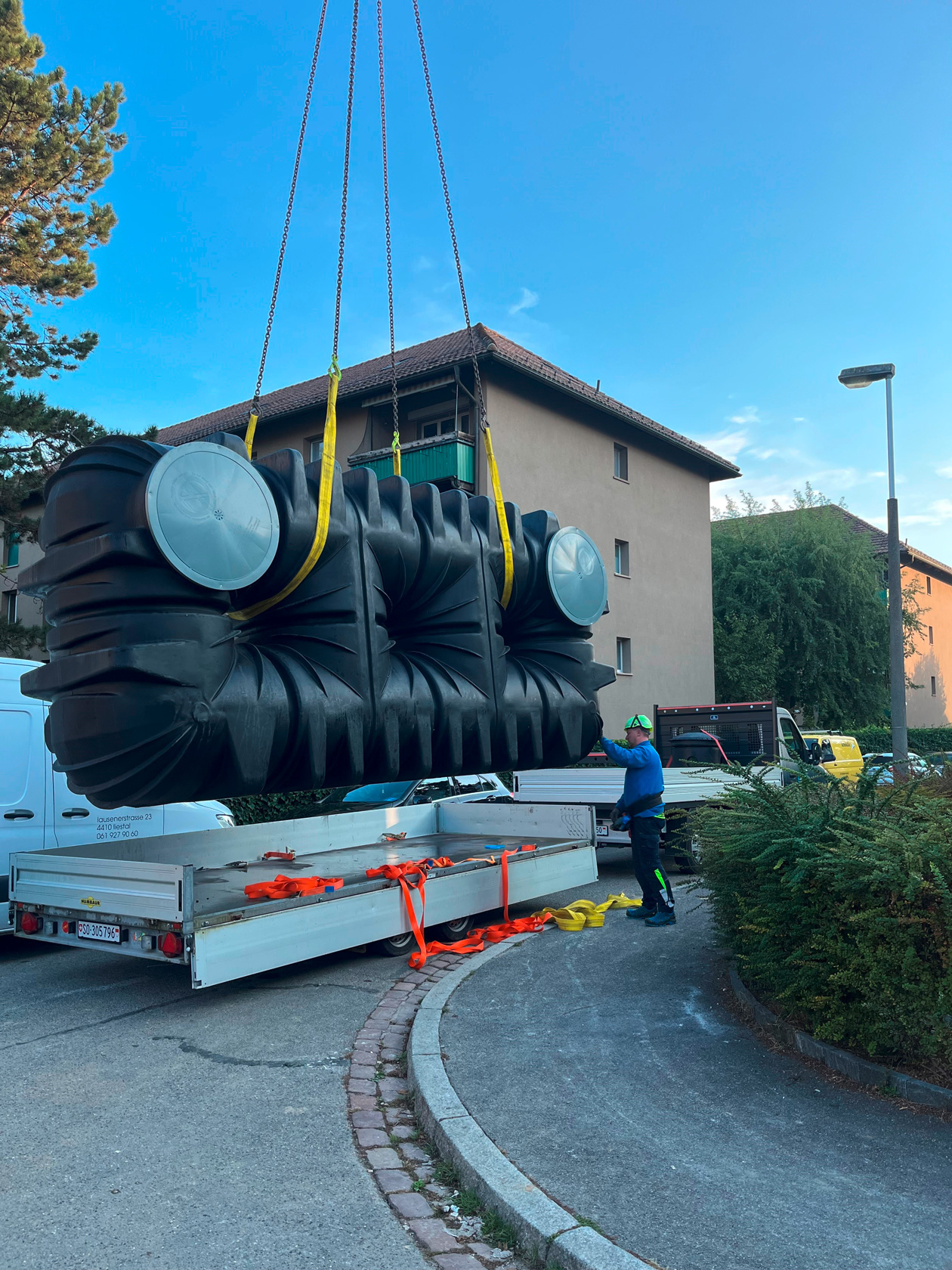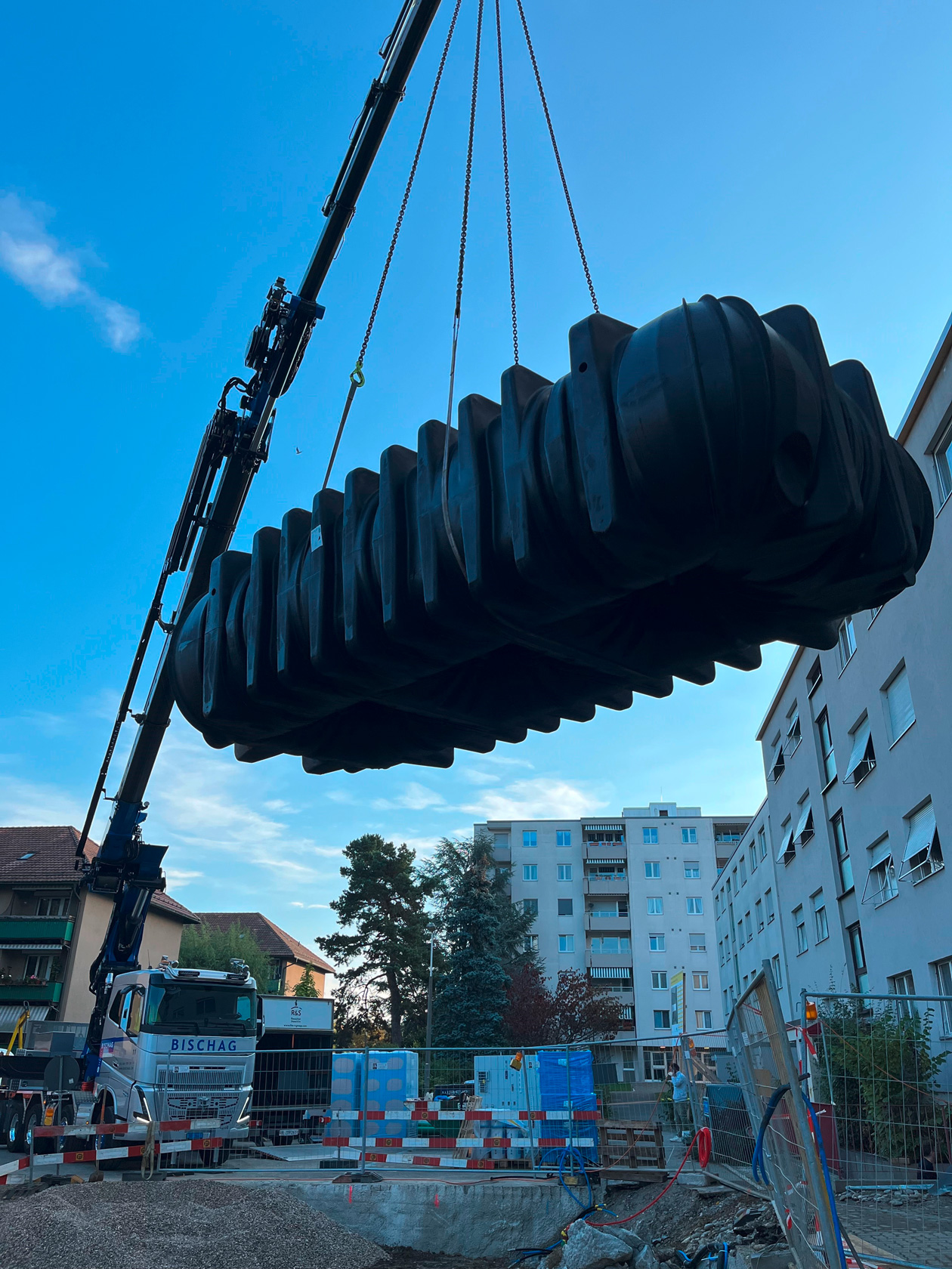 So wird in Zukunft das billige Regenwasser dort für die Bewässerung zur Verfügung stehen. Das rechnet sich auf die Dauer und ist ökologisch sinnvoll – und trägt nicht zuletzt den umweltpolitischen Anforderungen der Stadt Basel Rechnung. Demnächst werden die Tanks mit unserem technischen Support angeschlossen und wir werden die Inbetriebnahme begleiten.
